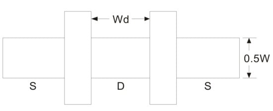 From Figure 6 and Figure 7, the calculations of area and perimeter of source and drain can be done for a one finger MOS transistor and is given in Equations (3) and (4) [33,34].