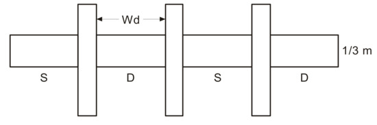 Perimeter of drain = PD3 = 2 × 2WD + (1/3)W = 4WD + W/3