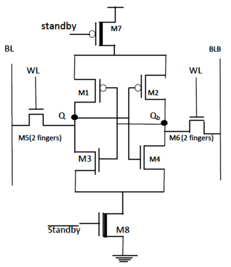 - Takeda, K.; Hagihara, Y.; Aimoto, Y.; Nomura, M.; Nakazawa, Y.; Ishii, T.; Kobatake, H. A read-static-noise-margin-free SRAM cell for low-VDD and high-speed applications. IEEE J. Solid-State Circuits 2006, 41, 113–121. [Google Scholar] [CrossRef]
