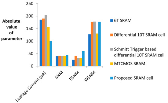 The graphical analysis of Figure 15 shows considerable improvement in the RSNM and leakage current when compared with conventional 6T SRAM cell.