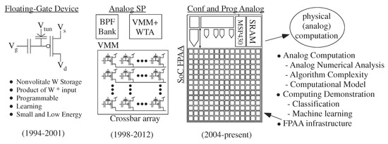 - Hasler, J. Abstraction, IP Reuse, and Algorithmic Framework for Physical Computing. In Proceedings of the GOMAC, Miami, FL, USA, 13–14 March 2018. [Google Scholar]