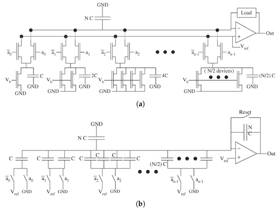 - Ozalevli, E.; Lo, H.-J.; Hasler, P.E. Binary-weighted digital-to-analog converter design using floating- gate voltage references. IEEE Trans. Circuits Syst. I 2008, 55, 990–998. [Google Scholar] [CrossRef]