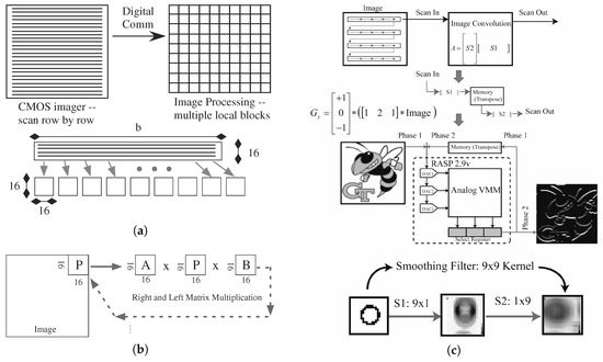 - Bandyopadhyay, A.; Lee, J.; Robucci, R.; Hasler, P. MATIA: A programmable 80 μW/frame CMOS block matrix transform imager architecture. IEEE J. Solid-State Circuits 2006, 41, 663–672. [Google Scholar] [CrossRef]