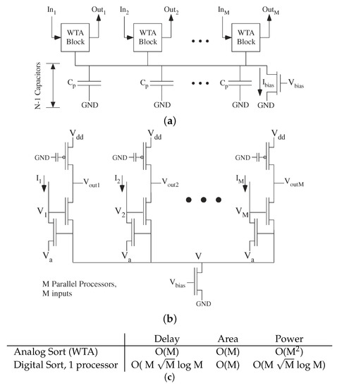 - Kruger, W.F.; Hasler, P.; Minch, B.A.; Koch, C. An adaptive WTA using floating gate technology. In Advances in Neural Information Processing Systems 9; Moser, M.C., Jordan, M.I., Petsche, T., Eds.; MIT Press: Cambridge, MA, USA, 1996; pp. 720–726. [Google Scholar]