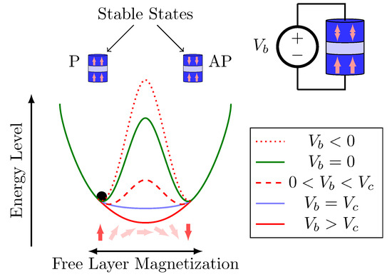 - Sharmin, S.; Jaiswal, A.; Roy, K. Modeling and design space exploration for bit-cells based on voltage-assisted switching of magnetic tunnel junctions. IEEE Trans. Electron Devices 2016, 63, 3493–3500. [Google Scholar] [CrossRef]