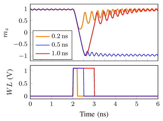- Lee, H.; Lee, A.; Wang, S.; Ebrahimi, F.; Gupta, P.; Amiri, P.K.; Wang, K.L. A Word Line Pulse Circuit Technique for Reliable Magnetoelectric Random Access Memory. IEEE Trans. Very Large Scale Integr. Syst. 2017, 25, 2027–2034. [Google Scholar] [CrossRef]