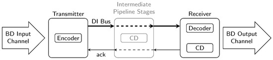 For this analysis we consider DI links as homogeneous linear pipelines, i.e., every pipeline stage is implemented identically and hence has similar delays. Because handshaking protocols involve the communication of a pipeline stage with the next and the previous stage the