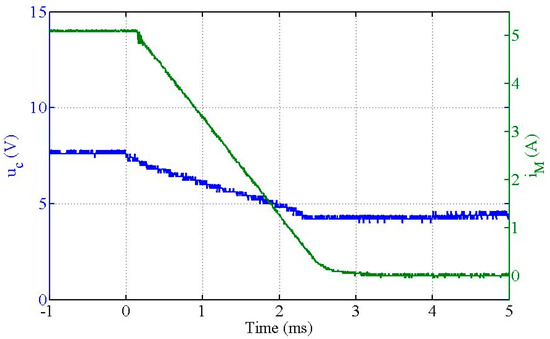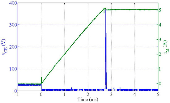 Figure 13 presents the experimental results of the collector–emitter voltage of the IGBT and magnet current during “Up” transitions.