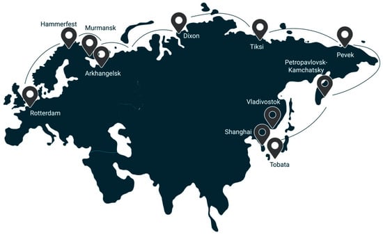 The above-mentioned limitations related to production and transport of hydrogen lead to the idea of situating hydrogen production in an area with a nearby well-established transport system, and not to build transport infrastructure of remote green field. The Northern Sea Route for transportation of the Russian Federation production to the countries of Western Europe and the Asia-Pacific region, Figure 1, is considered as a perspective due to the following factors []: