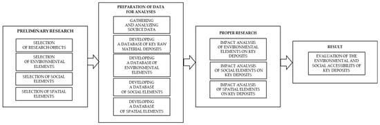 The environmental and social accessibility of key deposits was assessed on the basis of the proposed methodology proposed, which included four stages (Figure 1):