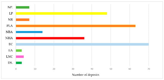 Number of deposits located within the areas of landscape-nature complexes and of ecological sites.