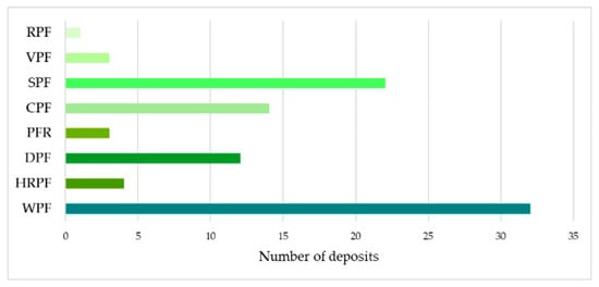 Investigations reveal 90 rock deposits documented within the areas of protected forests (Figure 7). According to the provisions of the Act on the Protection of Agricultural and Forest Land [25], all the above-mentioned deposits have limitations regarding the possibilities for their development. However, four deposits have been documented in an area smaller than 10 hectares and therefore can qualify as well accessible. The remaining 72 deposits have an area of more than 10 ha, so if their area is intended for purposes other than forestry, additional conditions resulting from the provisions of the Act on the Protection of Agricultural and Forest Land must be met. Therefore, they may be classified into accessibility zone III. Table 9 presents the results of deposit accessibility evaluations with relation to their locations within the areas of forests under particular protection.