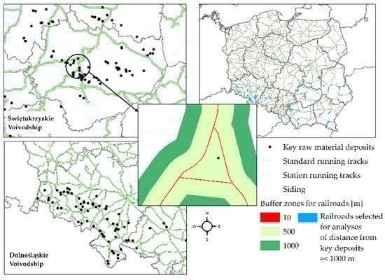 Analysis of transport-related accessibility of key raw material deposits—railway infrastructure (own study based on [27]).