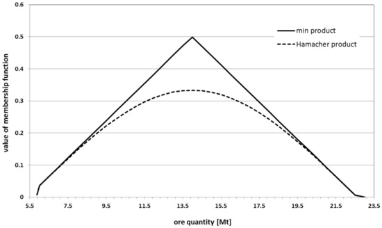 The values of MIN operator and Hamacher product for sets of large or very large tonnage and simultaneously medium or high ore grade are presented in Table 6.