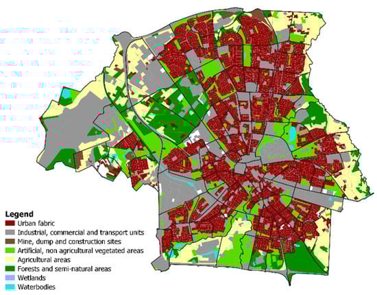 Most of the area of Eindhoven comprises urban, commercial and industrial areas or, in other words, houses, buildings and paved areas that are impervious (Figure 3). Furthermore, the soils in Eindhoven are predominantly clayey and, hence, are characterized by relatively slow infiltration rates that contribute to ponding and, on sloping terrain, runoff generation. Furthermore, several streams run through Eindhoven, so groundwater levels are near the soil surface throughout the year in several parts of the city. Therefore, pluvial flood events have been reported in Eindhoven [].
