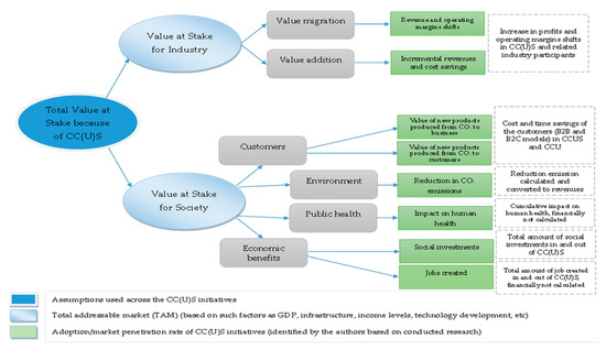 In the context of the above, in this section we present a framework for the analysis of the potential value of CC(U)S initiatives based on VAS approach. This tool, as mentioned above, was designed as an analytical framework for assessing the potential value of digitalization for both industry and wider society [105]. The following key points allowed us to apply VAS analysis to assess the value that CC(U)S initiatives can create for both industry and society: