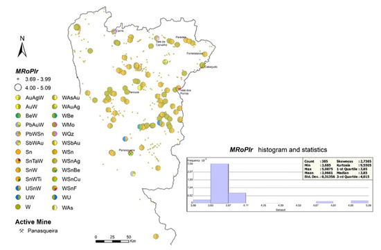 Assembling the scores gathered for criteria behind , , , and dimensions, a final of 8.07 (in 10.00) results for the Panasqueira tract when Equation (5) in Section 3.2 is applied.