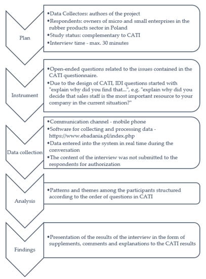 With the CATI method, an original questionnaire was developed (Appendix A). In the in-depth interview (Figure 1), the respondent was allowed full freedom of expression, and the interviewer directed the interview in such a way that the issues formulated in the research questions were raised. It is important to note that the respondents were asked to answer the questions only from the perspective of their own enterprise.