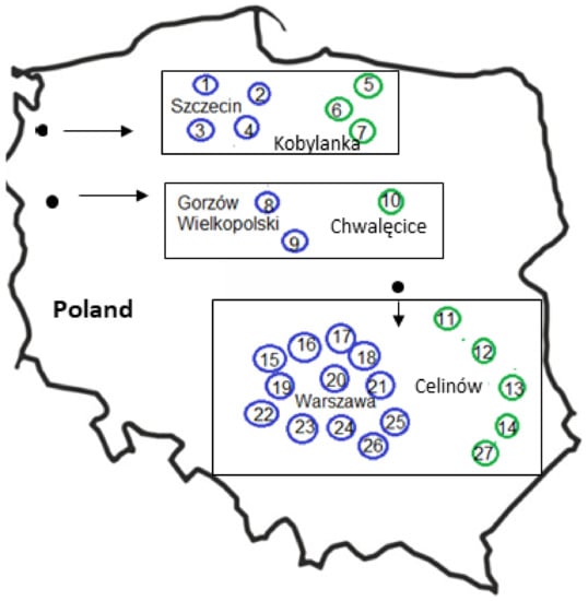The MMs investigation involved 27 sites in the NW and central parts of Poland. The data are presented in Table 4 and Table S3.
