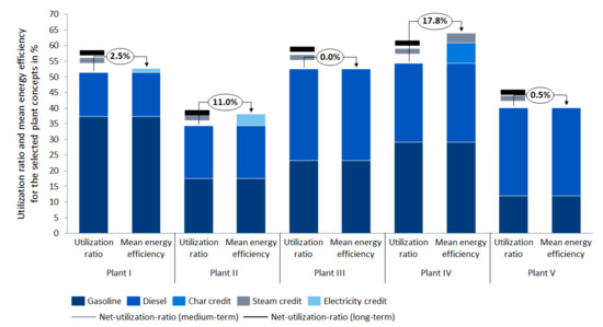 The production of by-products, e.g., steam, electricity, are either used within the plant concepts or, e.g., fed into the local grid as electricity credit in case of surpluses.