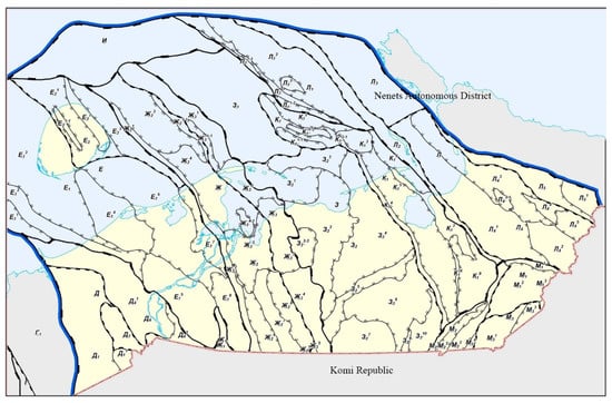 Tectonic scheme of the Timan–Pechora province.