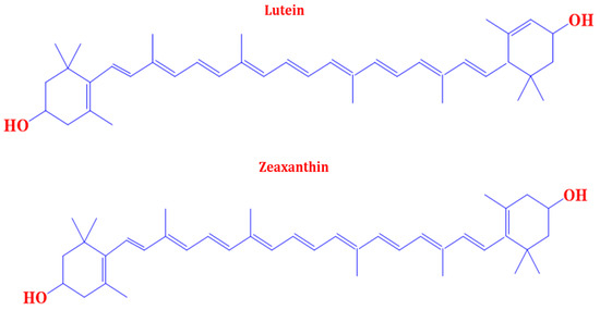 Structures of lutein and zeaxanthin.