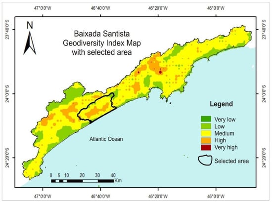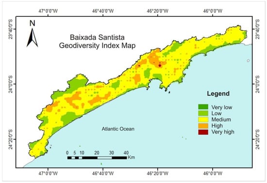 Geodiversity Index map of the Baixada Santista, State of São Paulo, Brazil.