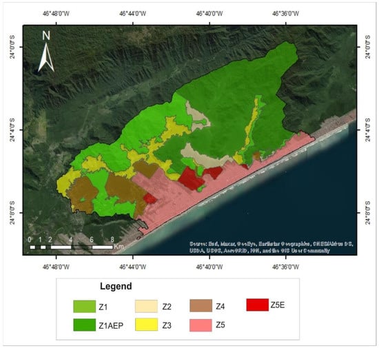 Territorial units and uses and activities allowed by ecological economic zoning (ZEE) of the Baixada Santista, State of São Paulo, Brazil. Source: modified from [].