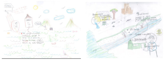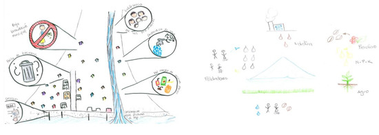 The drawings also provided information about the stakeholders’ perspectives about (a) which stakeholders are relevant to the issues at hand, and (b) how these stakeholders should interact with each other. Figure 3 shows examples of drawings from Panajachel featuring both public entities and citizens as relevant stakeholders.