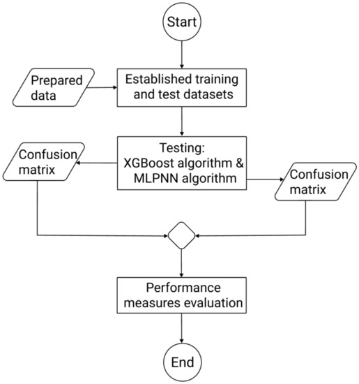 The training and test sets were created using the stratified sampling algorithm, with the year and month variables functioning as layers. The process of determining datasets is detailed in the description Evaluating the Predictions. The confusion matrices were formed on the basis of the second stage of the activity and were then used as inputs for the third stage, which involved evaluating the performance of the XGBoost and MLPNN methods.
