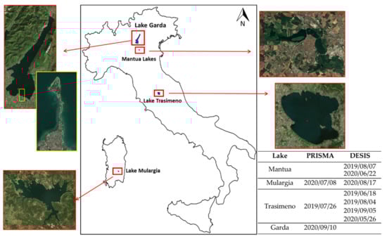 Bresciani, M.; Giardino, C.; Fabbretto, A.; Pellegrino, A.; Mangano, S.; Free, G.; Pinardi, M. Application of New Hyperspectral Sensors in the Remote Sensing of Aquatic Ecosystem Health: Exploiting PRISMA and DESIS for Four Italian Lakes. Resources 2022, 11, 8. https://doi.org/10.3390/resources11020008
