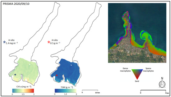 - Niroumand-Jadidi, M.; Bovolo, F.; Bruzzone, L. Water Quality Retrieval from PRISMA Hyperspectral Images: First Experience in a Turbid Lake and Comparison with Sentinel-2. Remote Sens. 2020, 12, 3984. [Google Scholar] [CrossRef]