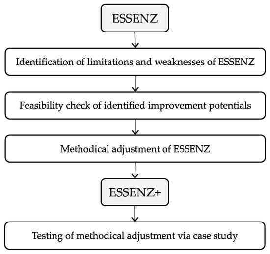 Several shortcomings have been addressed in the literature concerning the methodical approach [,,,]. Moreover, limitations of ESSENZ have been revealed in practice. A detailed overview of the shortcomings is provided in Section 2.1.