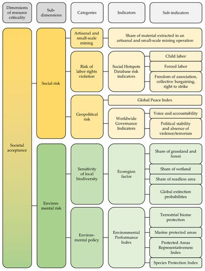 An overview of the different categories and (sub-)indicators within the Societal acceptance dimension is given in Figure 4.