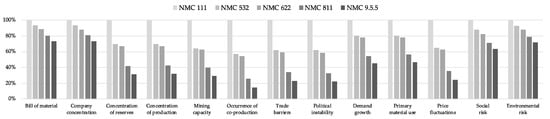 - Bongartz, L.; Shammugam, S.; Gervais, E.; Schlegl, T. Multidimensional Criticality Assessment of Metal Requirements for Lithium-Ion Batteries in Electric Vehicles and Stationary Storage Applications in Germany by 2050. J. Clean. Prod. 2021, 292, 126056. [Google Scholar] [CrossRef]