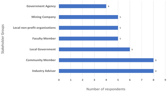 | Faculty Members | Industry Advisors | Government Agencies | Mining Company | Local Non-Profits | Community Members | Local Governments | All Respondents | |||