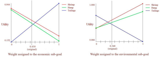 After all steps of the MADA were completed, we calculated the utility scores of each repurposing scenario by utilizing the Logical Decisions Software, obtained the ranking of alternatives, and interpreted the results. To calculate the utility scores of alternatives, we input the obtained weights to the Logical Decisions Software to be used in the multi-attribute utility functions in the form shown in Equation (3) [100,103].