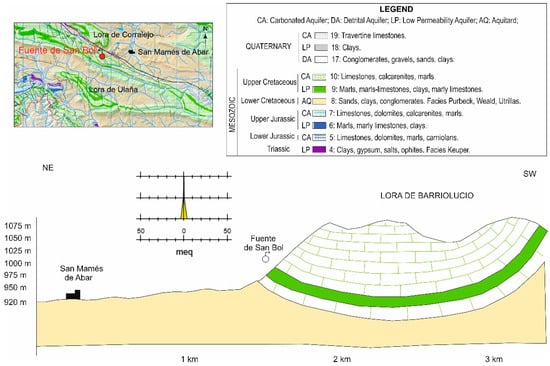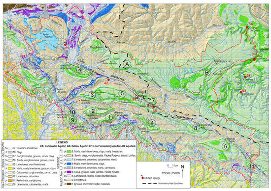 - IGME 1997c. Hoja Geológica MAGNA50 Núm. 166 Villadiego; Instituto Geológico y Minero de España: Madrid, Spain, 1997. [Google Scholar]