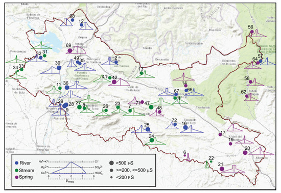 - De Moreno Merino, L.; De la Losa Román, A.; Romero Prados, A.; Carro Martín, S. Interpretación de análisis químicos de aguas subterráneas mediante la hoja INAQUAS. 2016. Luis Moreno Merino, Almudena de la Losa Román, Amalia Romero Prados, Sergio Carro Martín. Available online: https://www.igme.es/Publicaciones/Consulta/Libro/36830 (accessed on 11 March 2022).