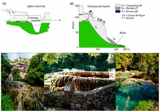 - Serrano Cañadas, E.; González, M.J. Las Tobas y la Villa de Orbaneja del castillo. Un entendimiento obligado. In Patrimonio geológico y geoparques, avances de un camino para todos/Miren Sorkunde Mendia Aranguren (ed. lit.), Asier Hilario Orús (ed. lit.), Manuel Monge Ganuzas (ed. lit.), Esperanza Fernández Martínez (ed. lit.), J. Vegas (ed. lit.), Ángel Belmonte (ed. lit.); Instituto Geológico y Minero de España (IGME): Madrid, Spain, 2015; pp. 197–202. [Google Scholar]