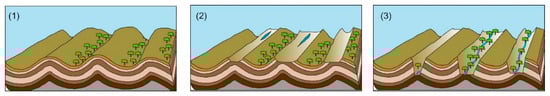 - Pulgar, J.A.; Alonso, J.L.; Espina, R.G.; Marín, J.A. La deformación alpina en el basamento varisco de la Zona Cantábrica. Trabajos de Geología 1999, 21, 283–294. Available online: https://reunido.uniovi.es/index.php/TDG/article/view/2902 (accessed on 1 September 2022).