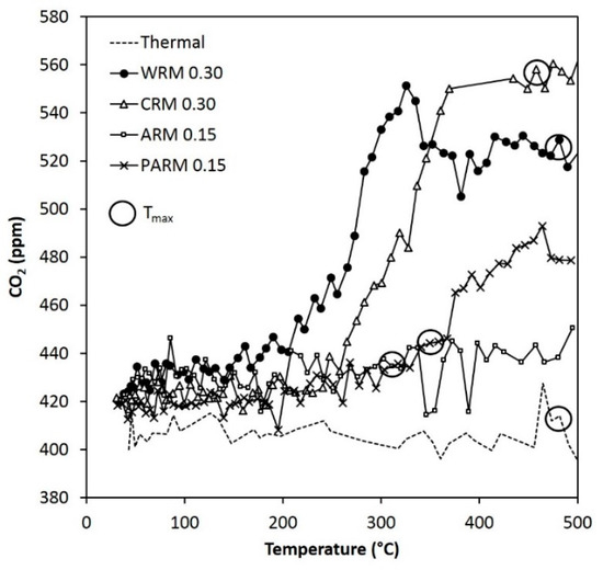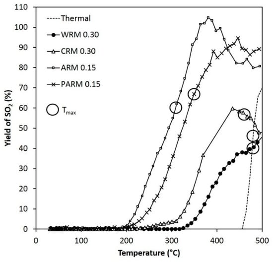 T50 and Tmax values and SO2 yields and CO concentrations at Tmax in the DMDS experiments (WRM: washed RM, CRM: calcined RM, ARM: HCl-activated RM, PARM: HCl + H3PO4 -activated RM).