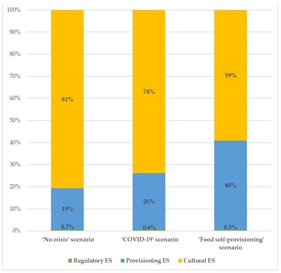 Ecosystem services provided by CG in ‘No crisis’; ‘COVID-19’; and ‘Food self-provisioning’ scenarios.
