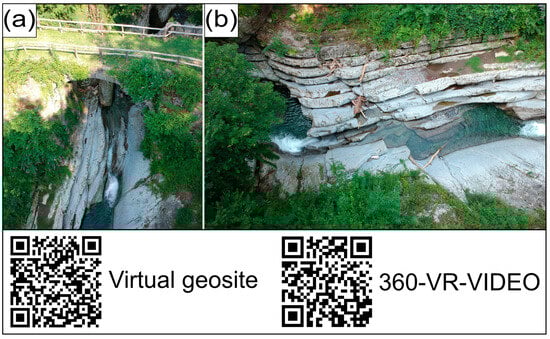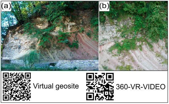 By clicking on the QR codes in Figure 3, it is possible to have access to both the Virtual Geosite and a 360° video, uploaded on YouTube.