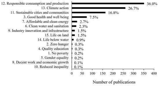The relation of listed publications to SDGs. Percentage values represent the ratios relative to the total number of papers (n = 977) yielded.
