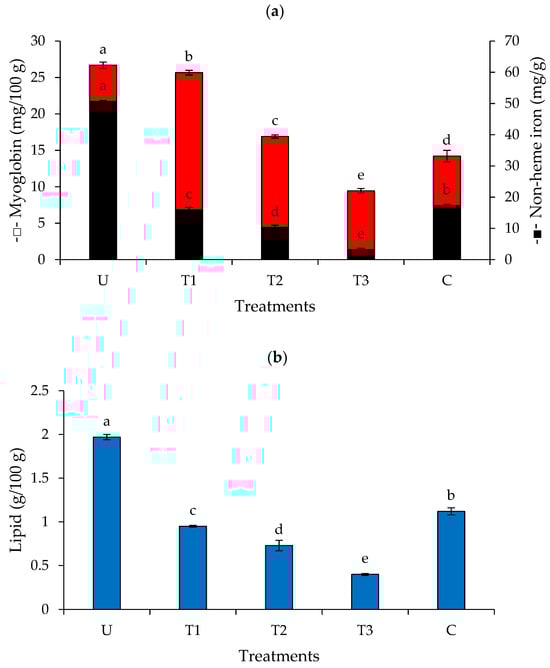 3.3. Myoglobin, Non-Heme Iron, and Lipid Contents