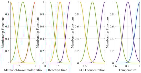 Inputs’ MFs of fuzzy model of biodiesel yield.