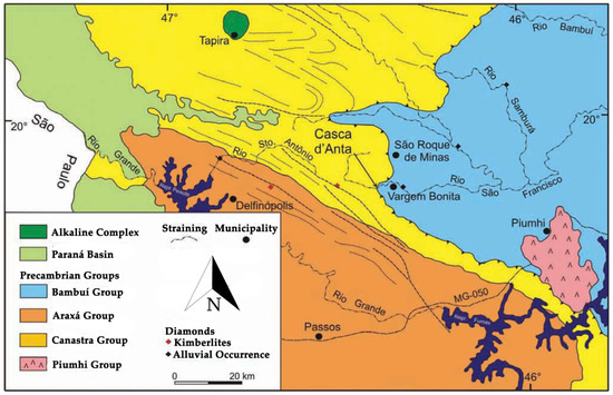 Geological map of the Canastra region in Minas Gerais State (modified from [51]).