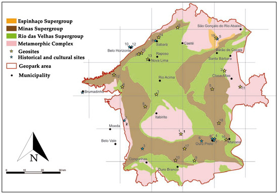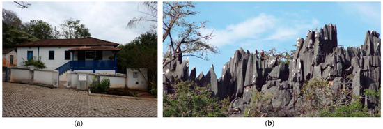 Moreover, local communities are an essential component of a geopark. Their support and involvement are mandatory for the implementation and development of the geopark initiative. The geopark projects or suggestions discussed here can only move forward with their actions along with their respective communities’ participation. Giving locals the responsibility of applicants and managers is a fundamental cooperation instrument for the development of actions at the local level, promoting the exchange of information, additional partnerships, voluntary rules, and experiences that contribute to building capacities related to sustainable planning and the strengthening of decision-making approaches [68,69,70]. All three recognized Brazilian UGGps have created their own respective multimunicipality consortiums/associations, established through partnerships and cooperation between different bodies, entities, and communities (each project in MG is discussed in detail in the subsections below), with the aim of sharing knowledge, ideas, and practices to reach the full potential of geopark actions as well as the development of local communities.