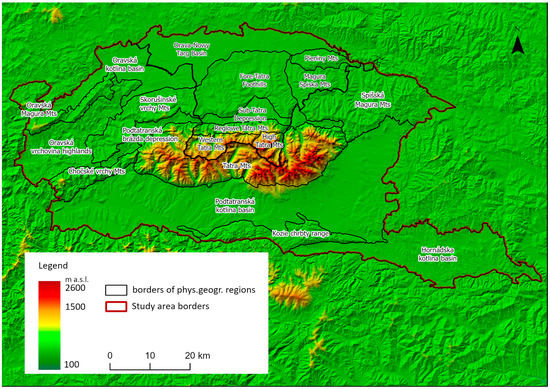 - Mazúr, E.; Lukniš, M. Geomorfologické jednotky. In Atlas Slovenskej Socjalistickej Republiky; Mazúr, E., Ed.; Slovenská Akademia vied, Slovenský Úrad Geodézie a Kartografie: Bratislava, Slovakia, 1980. [Google Scholar]